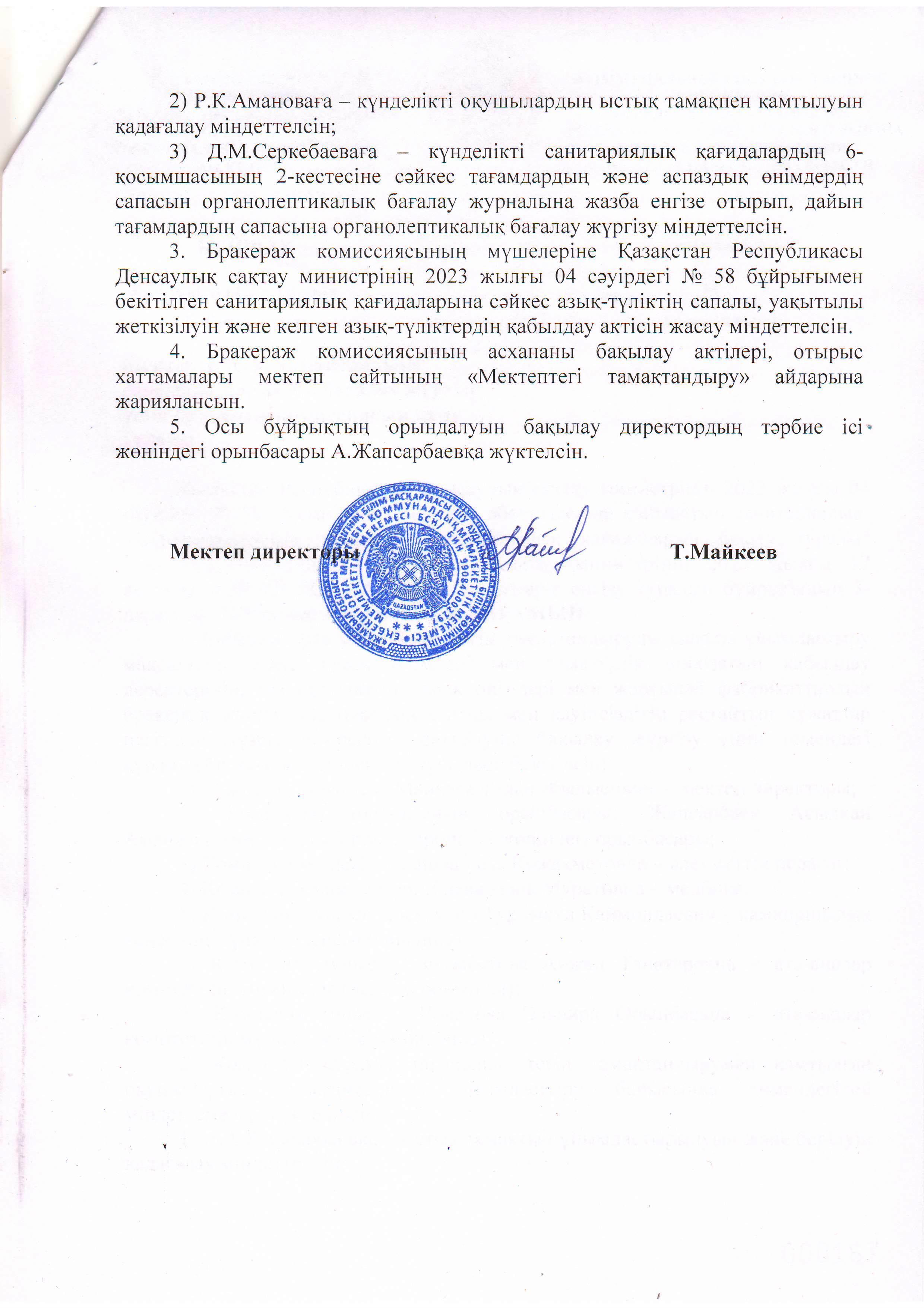 Бракераж комиссиясын құру туралы бұйрық » Еңбекші орта мектебі