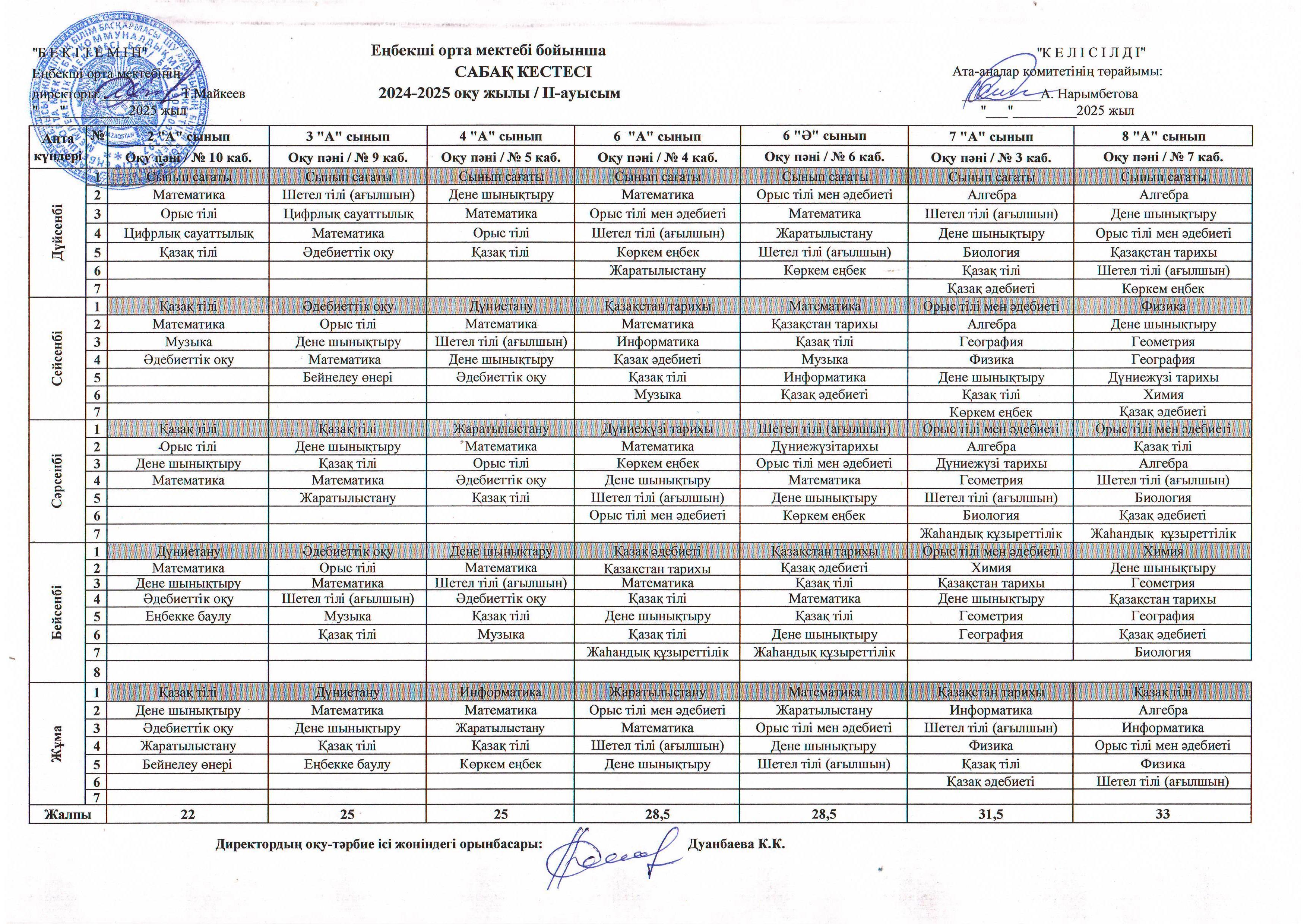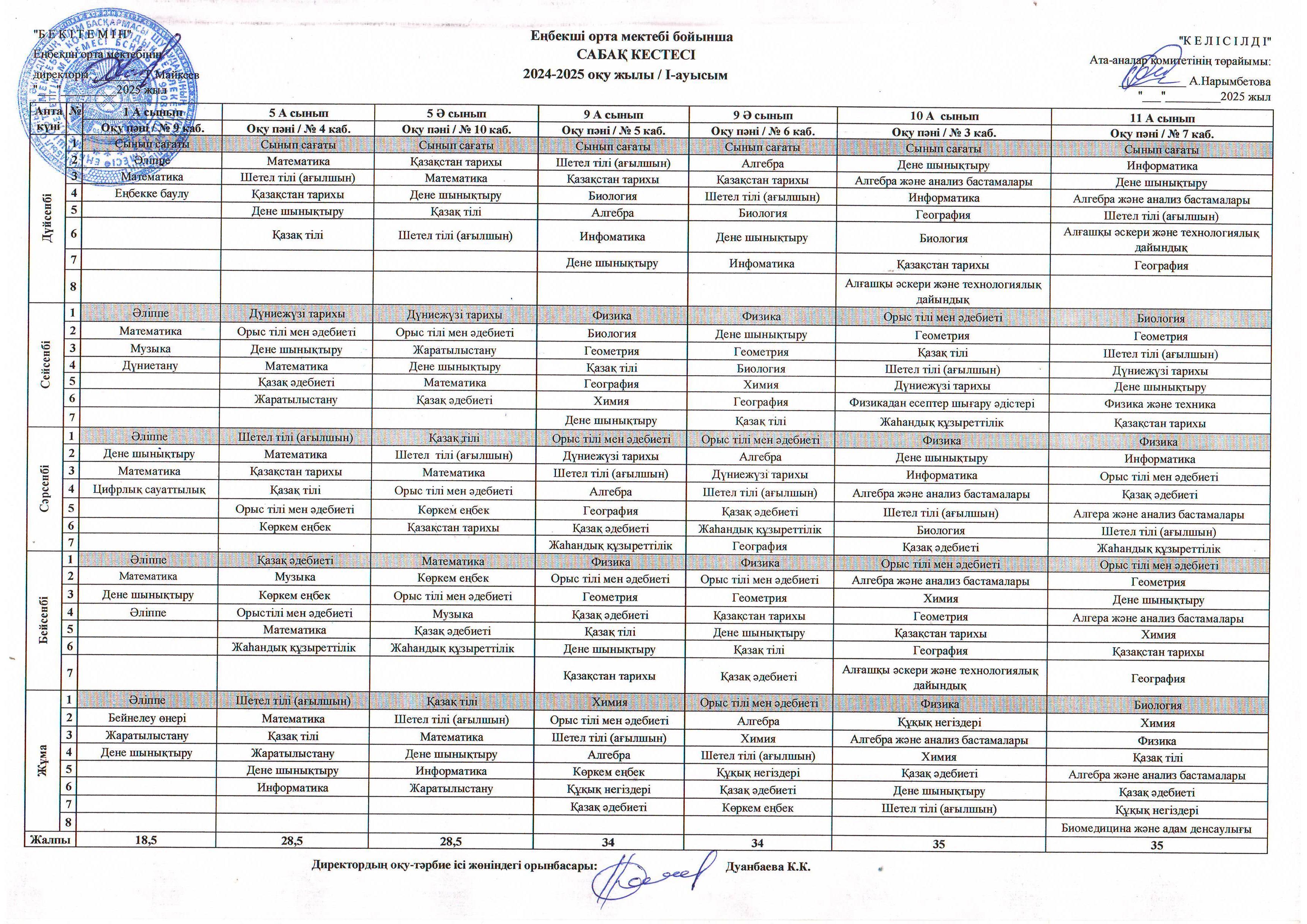 САБАҚ КЕСТЕСІ » Еңбекші орта мектебі