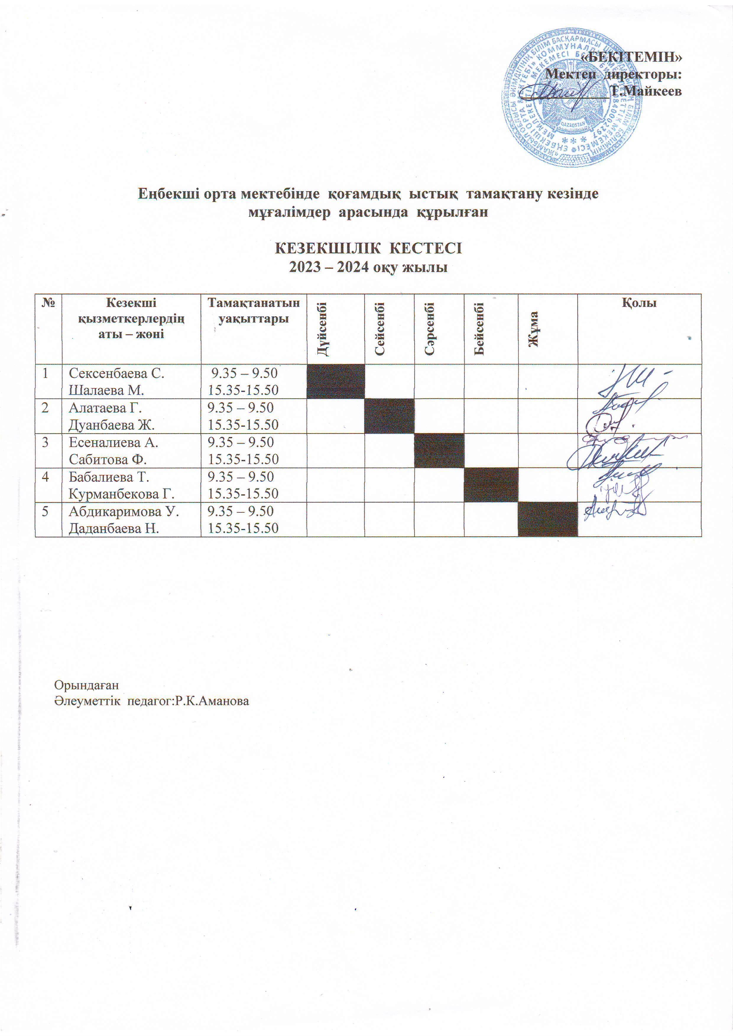 Асханадағы кезекшілік » Еңбекші орта мектебі