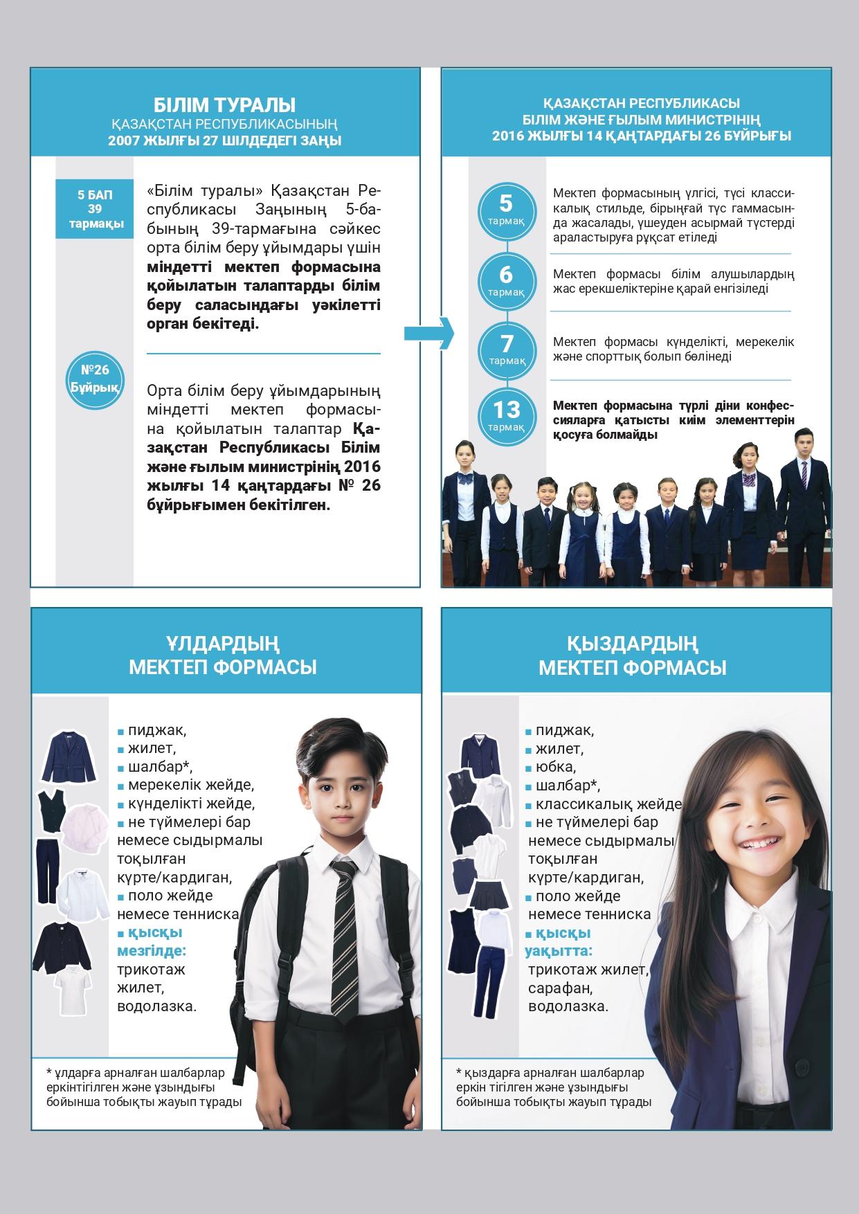 » » БІЛІМ БЕРУ ҰЙЫМДАРЫНДАҒЫ МЕКТЕП ФОРМАСЫНА ҚОЙЫЛАТЫН ТАЛАПТАР